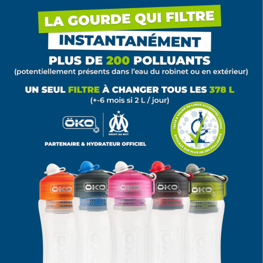 Les gourdes filtrantes ÖKO permettent d’améliorer la qualité de l’eau du robinet ou de sources d’eau douce, en réduisant de nombreux contaminants (chlore, métaux lourds, résidus indésirables), tout en limitant l’usage des bouteilles en plastique.